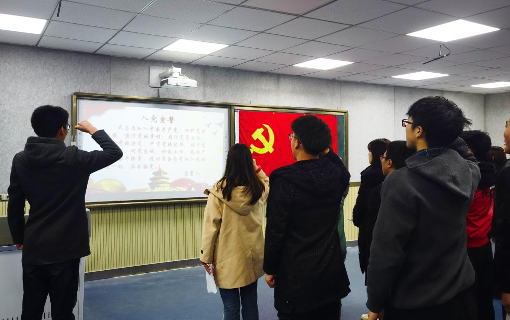 交流时,新发展的员工党员们围绕一年多来个人的成长状况,从思想觉悟、实际行动两个方面展示了进步,也反思了不足,同时还在深切的感悟中提出了切实可行的改进方法。随后,李虹燕副书记肯定了员工党员们在的自动成长,也对同学们提出了由思想到实践再到思想的闭环式发展的要求和落实方式。她希望员工党员们能够主动自觉地,全维度地发挥党员先锋模范作用。会后,本科生党支部副书记韩鹏同学带领全体员工党员进行宣誓仪式。