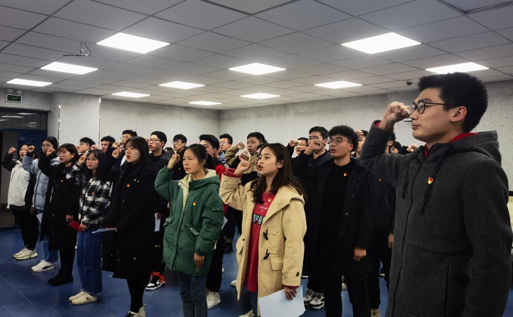 交流时,新发展的员工党员们围绕一年多来个人的成长状况,从思想觉悟、实际行动两个方面展示了进步,也反思了不足,同时还在深切的感悟中提出了切实可行的改进方法。随后,李虹燕副书记肯定了员工党员们在的自动成长,也对同学们提出了由思想到实践再到思想的闭环式发展的要求和落实方式。她希望员工党员们能够主动自觉地,全维度地发挥党员先锋模范作用。会后,本科生党支部副书记韩鹏同学带领全体员工党员进行宣誓仪式。
