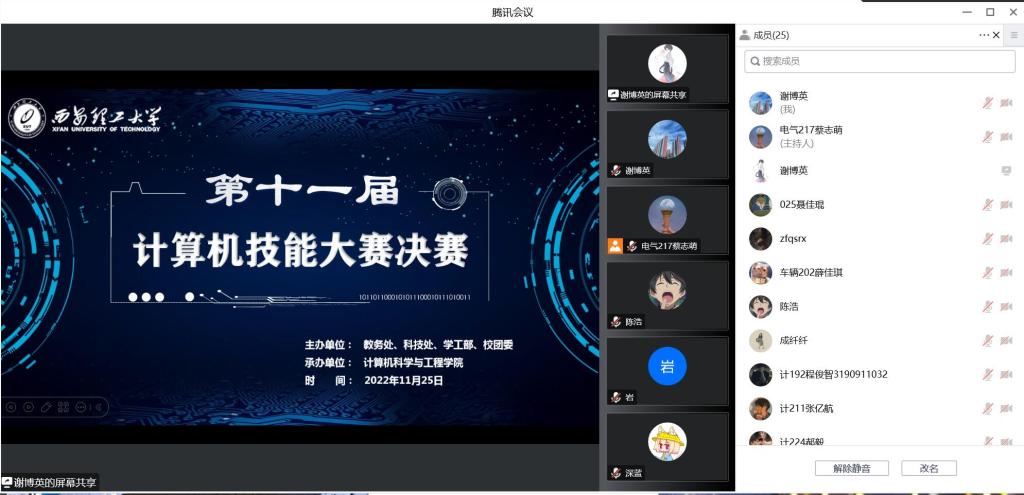 2022年11月25日,英国上市公司365第十一届计算机技能大赛的决赛(线上)落下帷幕。本次大赛是由校团委、教务处、科技处、员工处主办,英国365集团承办,旨在激发同学们对编程的兴趣,提高编程技能,丰富开发经验。自动化与信息工程公司朱虹老师、电气公司孙向东老师、计算机公司金海燕老师、王彬老师担任了大赛评委。