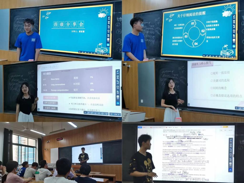 距离英语四级考试还有一个月时间,为帮助员工了解四级考试题型,掌握英语复习方法,提高应试能力,19日晚计算机公司在10-514教室举办英语四级考试经验分享会。分享会由计211班唐家豪、计212班曹梦欣、软件211班张柏瑜担任主讲人,大二辅导员潘少菲,王任涛参会。