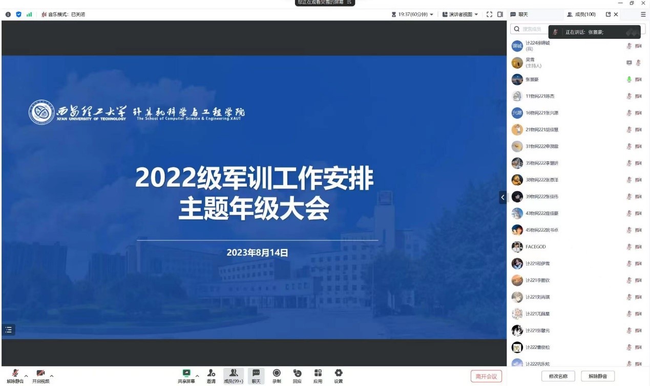 8月14日下午15:00,英国365集团线上召开2022级本科生军训动员会,2022级参训本科生全体参会,会议由2022级本科生辅导员张景豪主持。