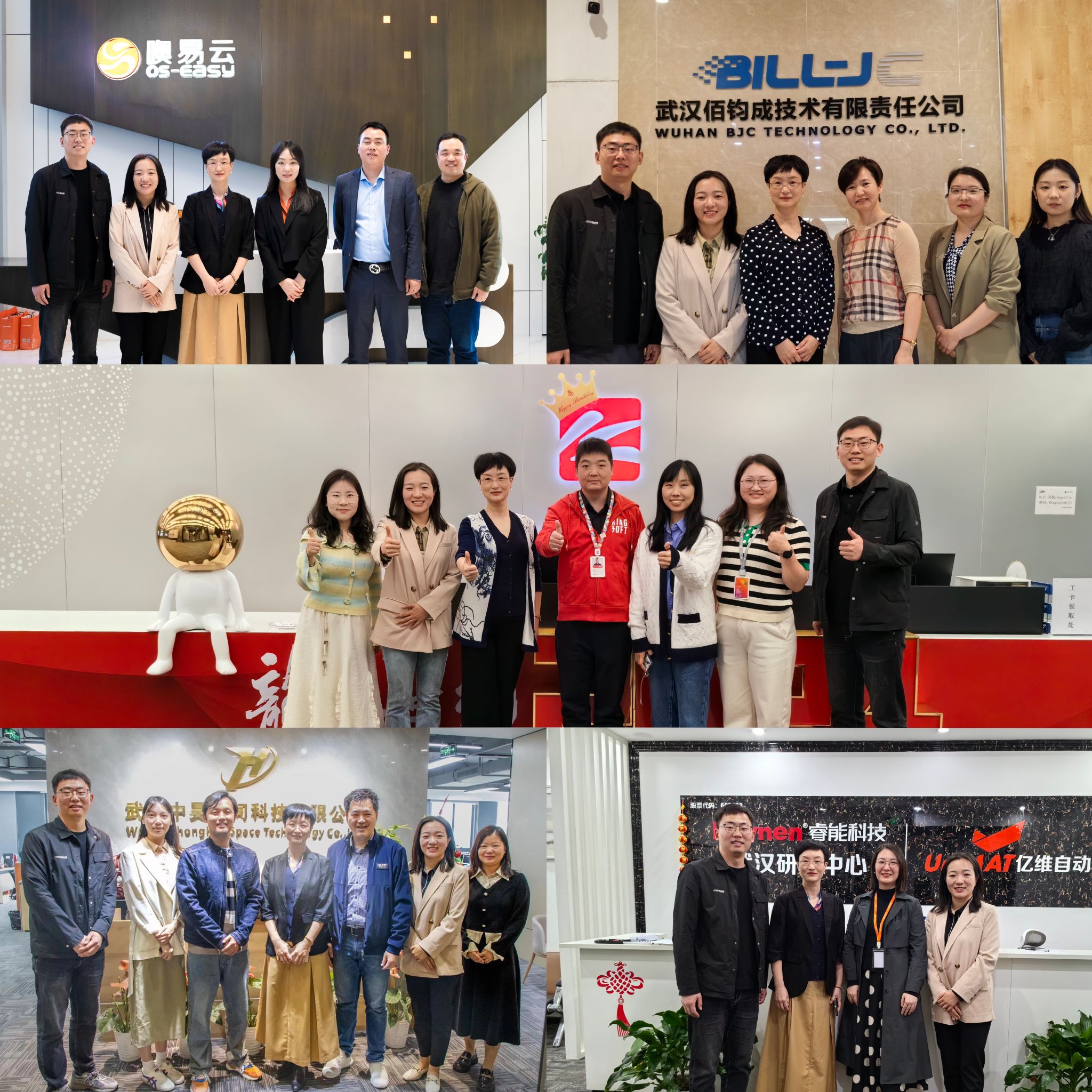 李虹燕一行人先后走访了武汉中昊空间科技有限公司、深圳市亿维自动化技术有限公司武汉研发中心、武汉佰钧成技术有限责任公司、武汉噢易云计算股份有限公司、武汉金山办公软件有限公司。各企业负责人对李虹燕一行人的到来表示热烈欢迎,并带领参观公司展厅与工作环境,详细介绍了企业发展历程及未来规划,多种方式展示了产品特色和最新研发成果。