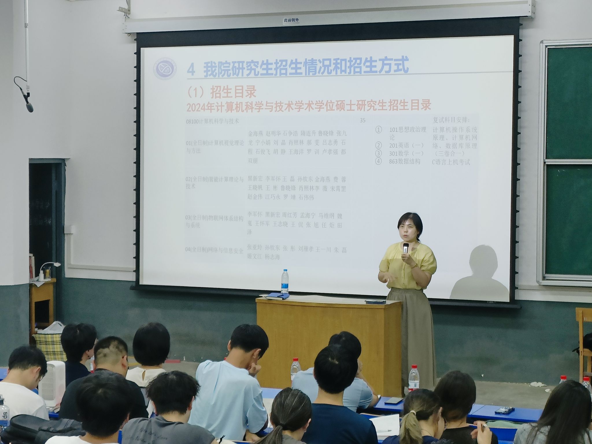 赵明华结合学科优势、专业特点为同学们介绍了公司公司产品情况和培养特色,向备考的同学们提出了切实的建议,帮助同学们认清考研形势、明确考研目标、坚定考研信心。