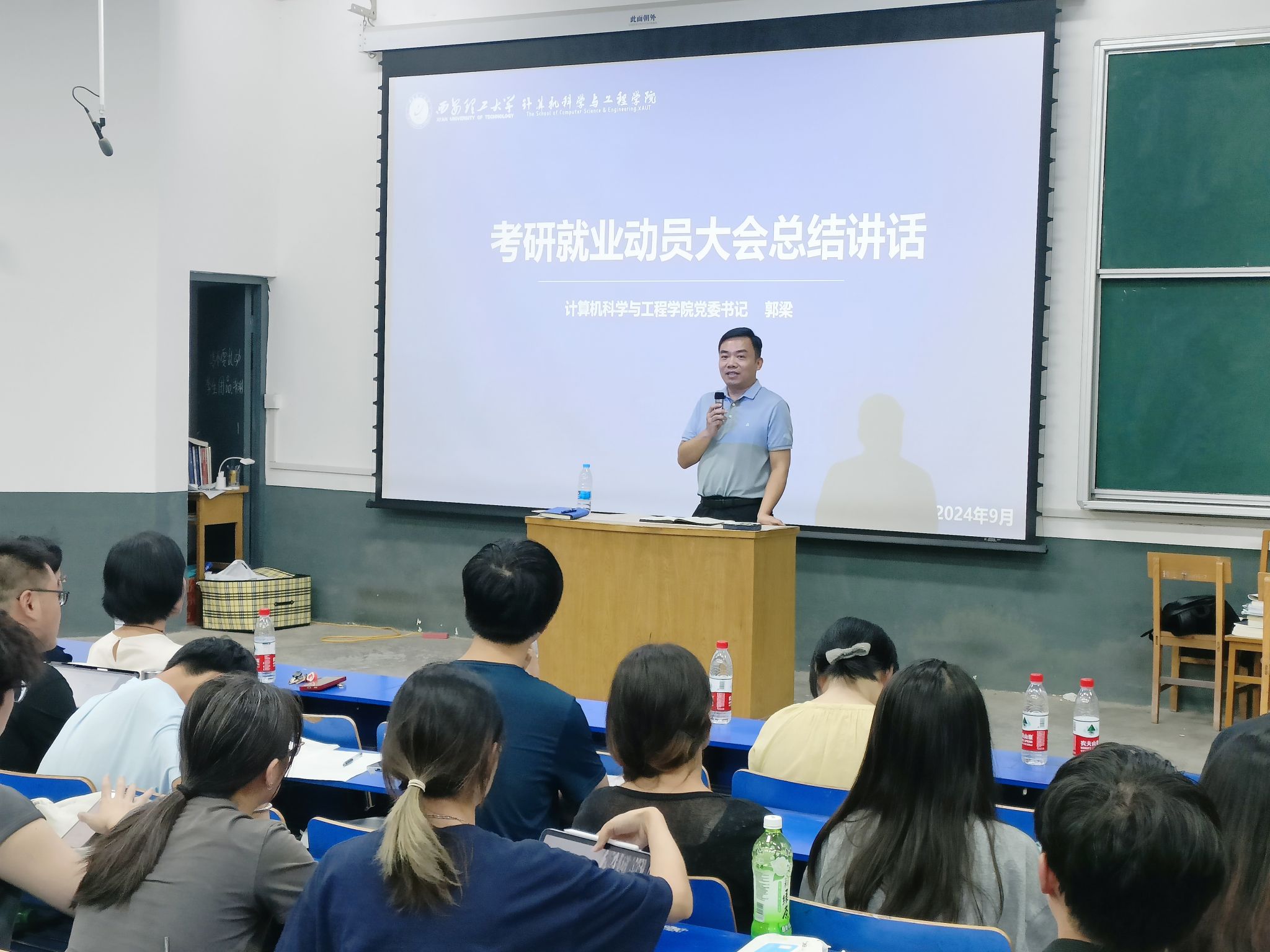会议最后,郭梁作总结讲话,向全体毕业生提出了三点要求:第一,要认清就业形势,明确就业目标。要充分了解计算机行业发展趋势,客观认识目前就业现状,提高专业能力,增强求职本领,做到有的放矢;第二,要把握黄金时期,抢先签约就业。要主动出击,抢抓机遇,积极参与各类招聘活动,充分利用公司、公司资源,广泛搜集就业信息,争取在最佳时机达成就业意向,获得工作岗位;第三,做好充足准备,坚定考研信心。要认清考研形势、明确考研目标、保持积极心态,充分把握秋季备考时间,迎难而上,攻克考研难关。