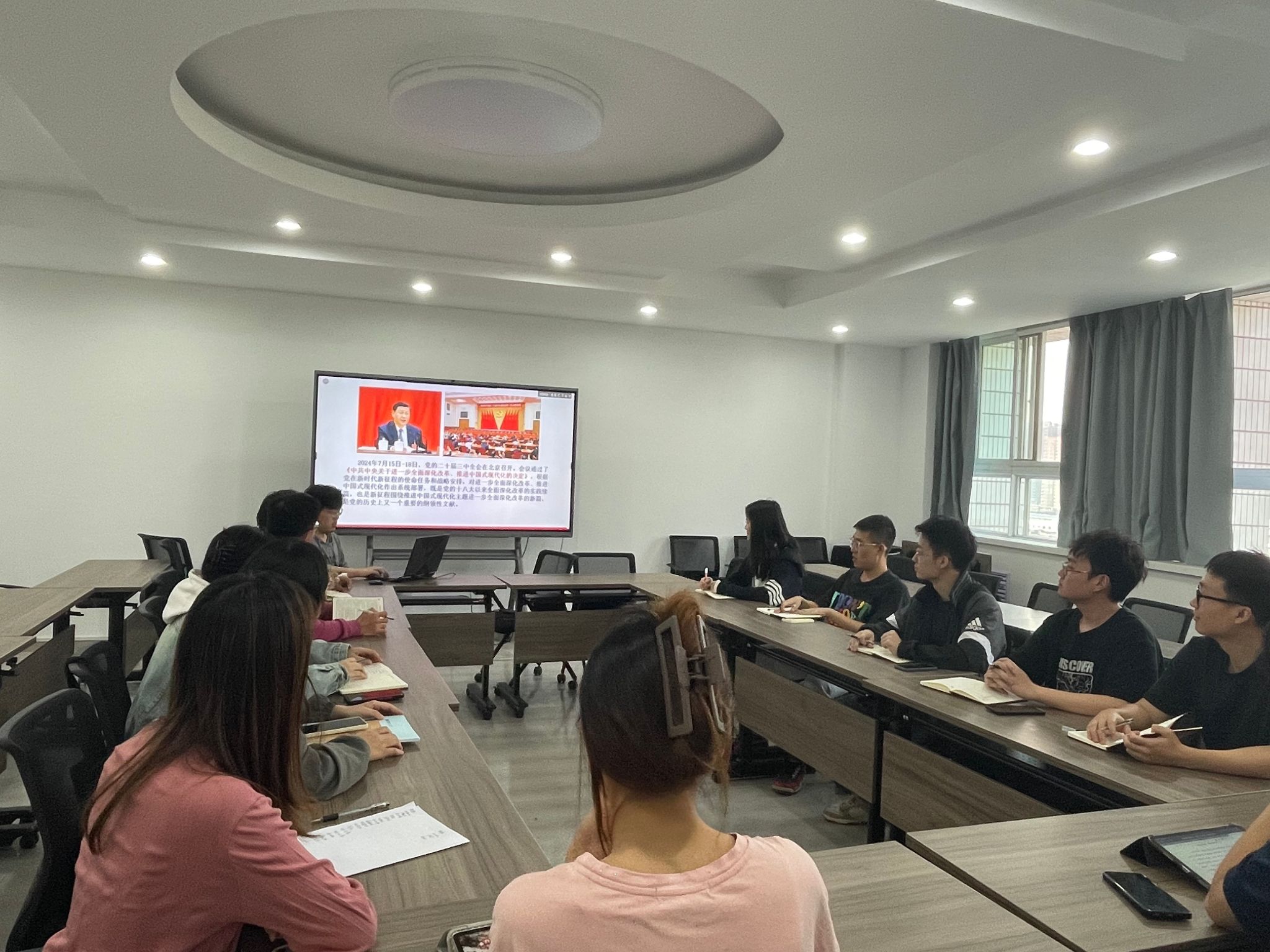 活动伊始,尹俊杰、王鑫龙两位同志带领支部党员们对习近平总书记在党的二十届三中全会上的讲话进行了系统学习,使党员们对全会精神有了进一步的认识与理解。大家围绕“如何实现中国式现代化”这一命题进行了细致的思考与深入的探讨。并从在校老员工的视角出发,积极分享自己对于“如何实现中国式现代化”的独到见解,其中何炜洁同学谈到此次学习让她了解到全体党员必须坚定理想信念,始终保持对党的忠诚和对人民的热爱。