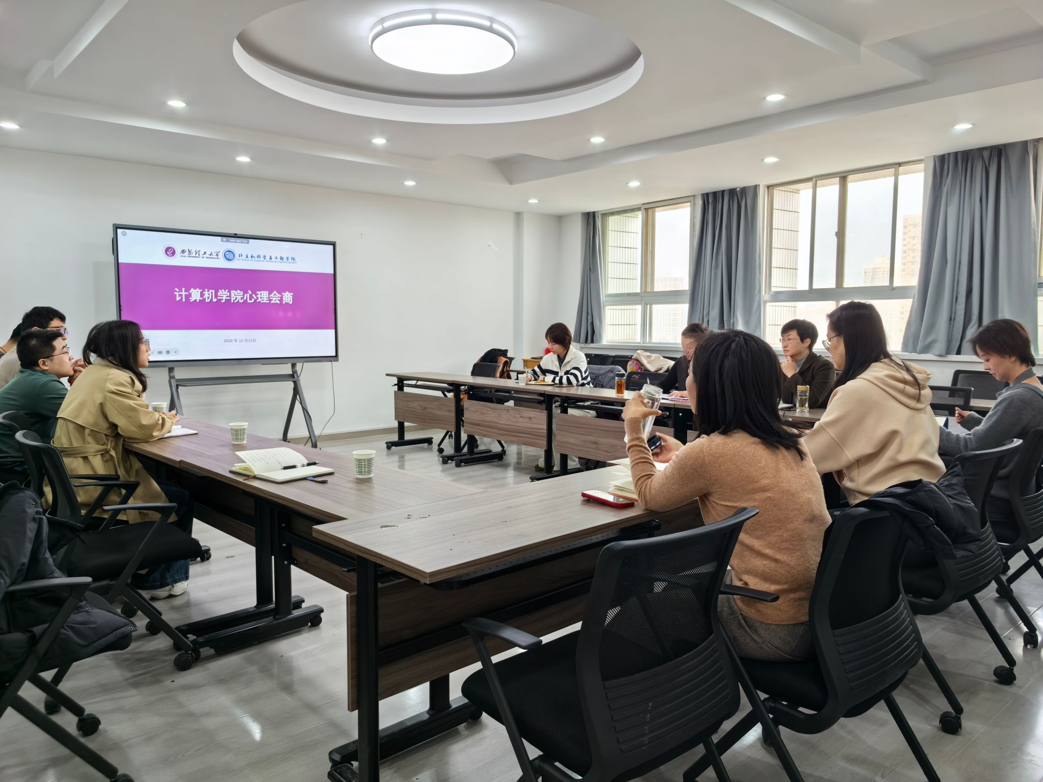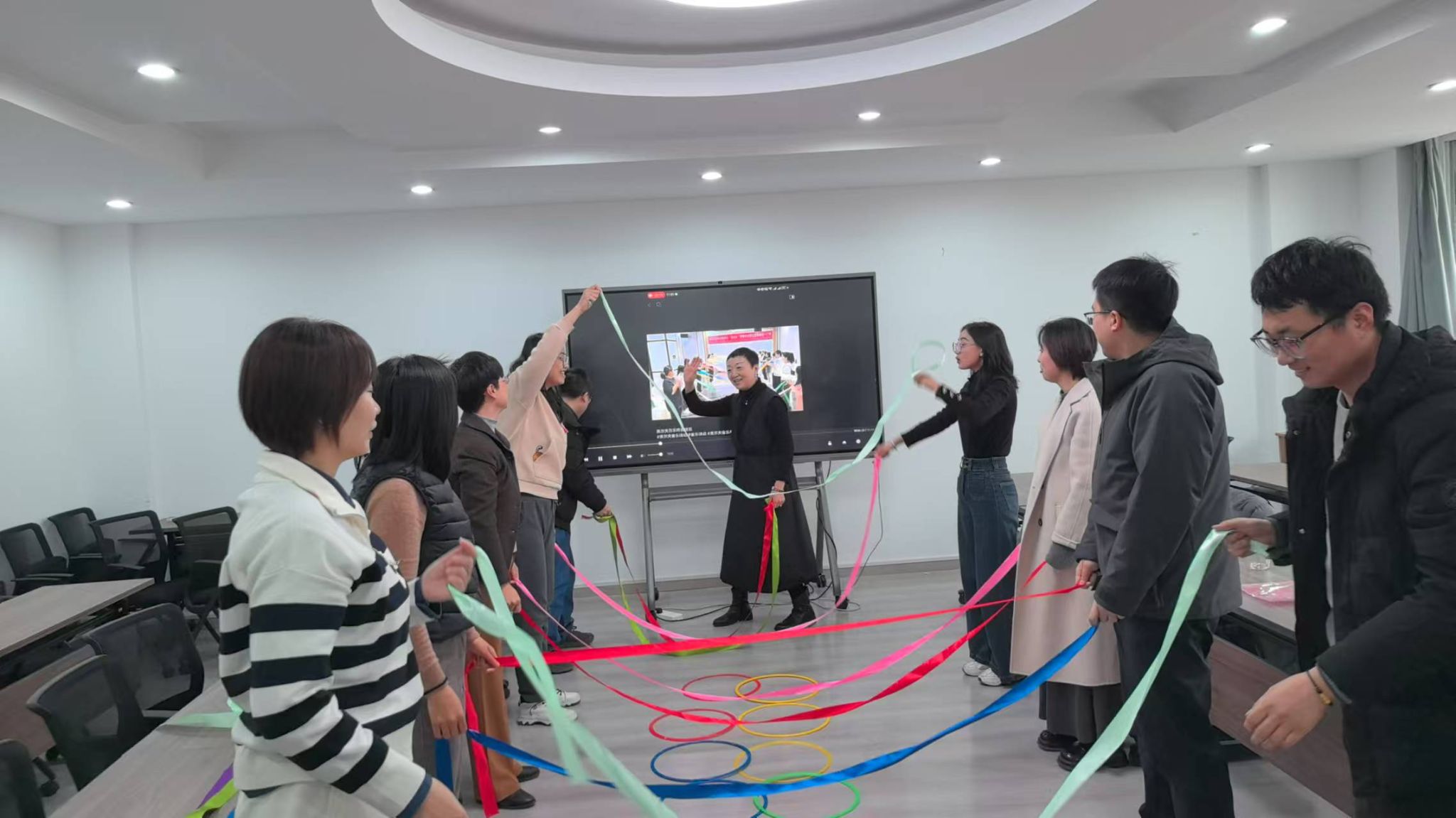 会商前,李进老师和尚洁老师组织大家用几个小游戏配上欢乐的音乐引导大家释放压力,以更加轻松愉悦的状态投入到工作。之后进入会商环节,各年级辅导员就新生面谈与老生学期排查中的重点关注员工,从心理变化、行为表现以及演变过程等方面进行依次汇报。李进老师结合每位辅导员提出的新问题、新情况进行一一解答,并强调心理危机干预的工作原则和注意事项。为织密员工心理动态和危机预防干预防护网,李进老师对心理问题引发的毕业困难、学习困难给出了针对性的建议。