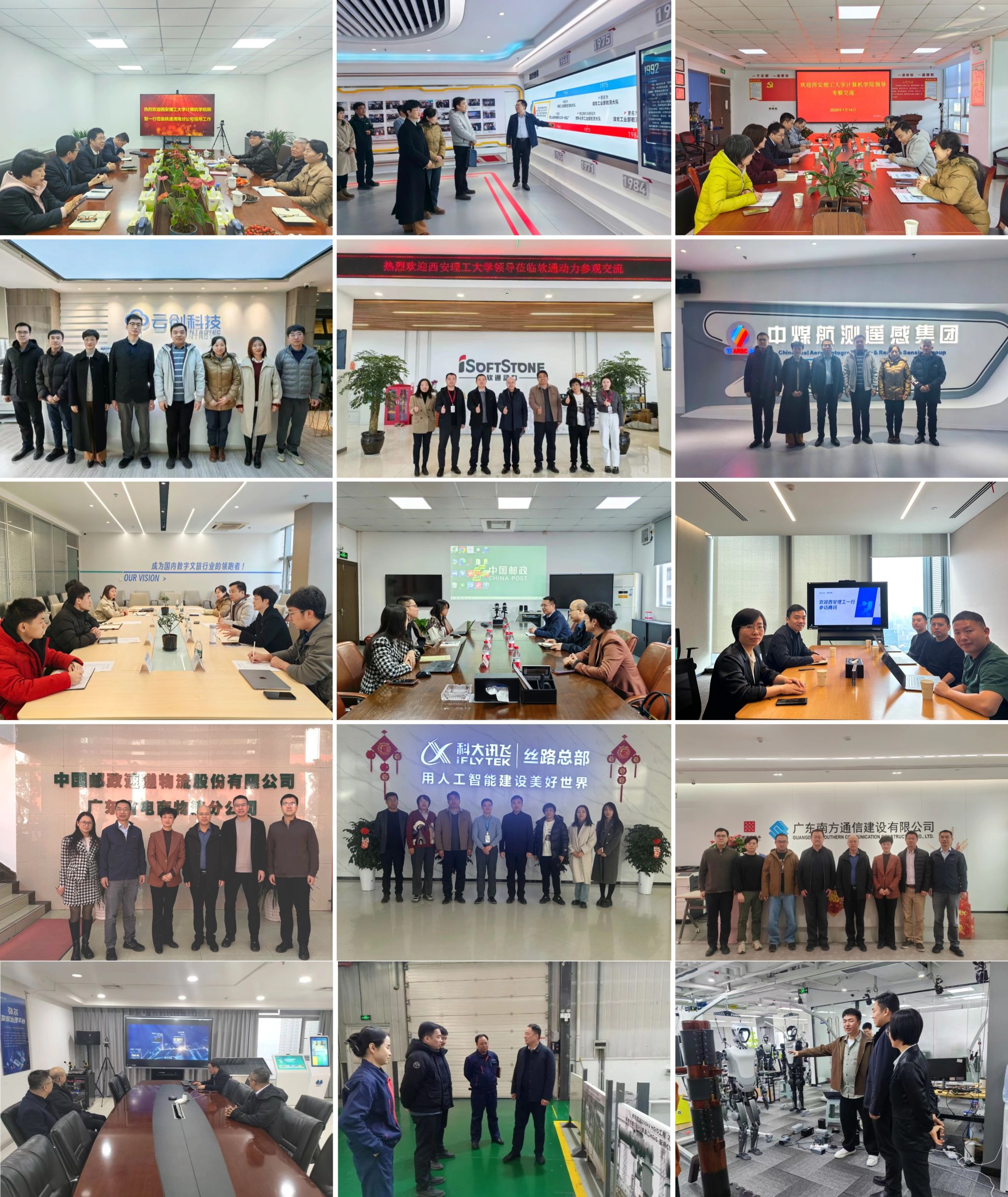 在陕西省,公司重点走访了中煤航测遥感集团有限公司、陕西云创网络科技股份有限公司、联通数字科技有限公司、科大讯飞丝路总部、西安软通动力技术服务有限公司、诚迈数科(陕西)技术有限公司、西安西电开关电气有限公司以及中移铁通有限公司渭南分公司等企业,精准对接行业需求,共谋校企协同发展新路径,分别围绕遥感测绘、大模型开发与应用、本地通信服务等领域开展座谈,会上双方还就技术创新、人才培养、项目合作以及招聘计划等方面开展深入探讨及交流。