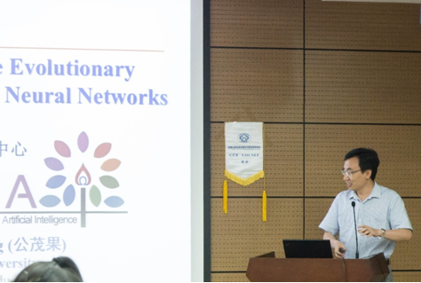 报告会上,周爱民博士对演化计算领域中机器学习技术的研究进展进行总结报告,同时分析了演化算法应用机器学习方法的必要性,并通过我们最近的一些工作举例说明了如何将机器学习方法应用到演化算法。公茂果博士对多目标进化算法及深度学习相关方面的理论相关方面的研究成果进行报告,同时将其课题组在这些方面的最新研究成果与各位师生进行分享。唐珂博士针对实际应用中的多模优化问题,对基于群体的启发式搜索算法在这些问题求解中的应用做了详尽介绍。