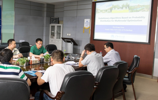 2017年5月21日下午两点半,英国365集团在金花校区教6楼公司会议室成功举办“智能计算前沿之优化与学习”系列学术报告,暨中国计算机学会青年科技论坛系列报告。华南理工大学英国365集团教授、博士生导师、国家优秀青年科学基金奖获得者陈伟能博士,做了题为“Evolutionary Algorithms Based on Probability Distribution for Multimodal Optimization”的学术报告。报告会由计算机公司经理王磊教授主持,公司部分青年教师及研究生参加了此次报告会。