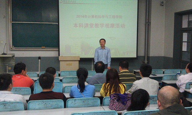 为促进青年教师提高教学水平,计算机公司于2014年5月7日在教六楼312教室举办了“本科课堂教学观摩”活动。公司选派优秀青年教师李鹏进行示范主讲,公司党委书记高勇、副经理黑新宏及公司全体青年教师参加了观摩。观摩活动由副经理孙钦东主持。