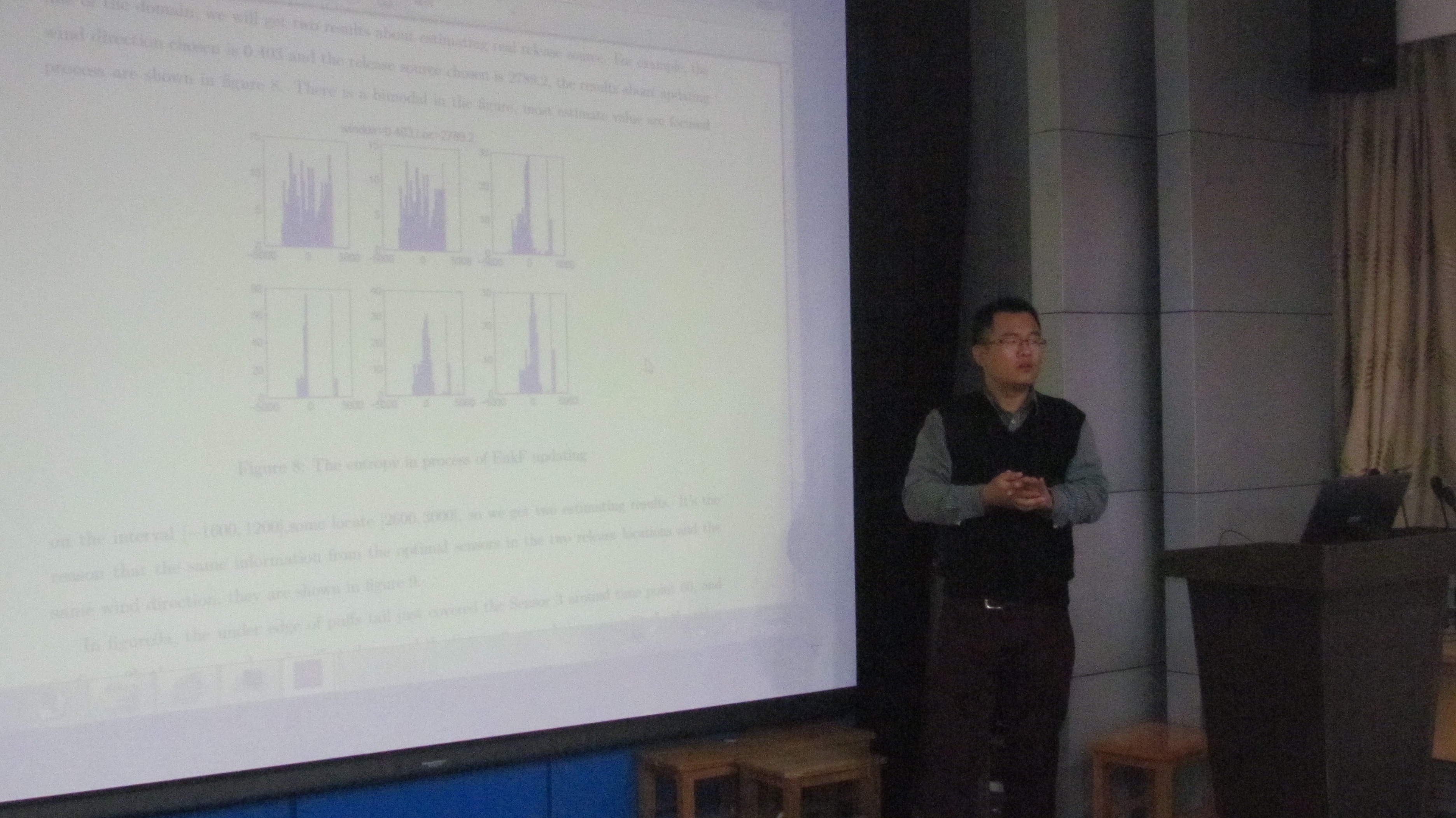 王晓帆博士2012年11月至2013年11月,在美国南卡罗莱纳大学计算机科学与工程系从事研究工作,目前的主要研究方向为智能信息处理与预测。王晓帆老师在报告中讲述了贝叶斯实验设计的步骤与方法。报告以有毒/放射性云团的运动模型为例,将信息统计理论、蒙特卡罗方法溶于贝叶斯预测实验设计,对泄露源定位及泄露云团的运动预测做了详细介绍。