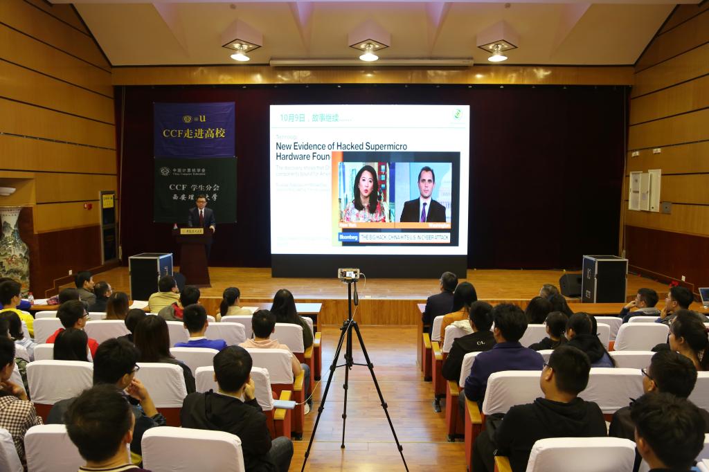 中国计算机学会(CCF)成立于1962年,是中国计算机及相关领域的学术团体,宗旨是为本领域专业人士的学术和职业发展提供服务;推动学术进步和技术成果的应用;进行学术评价,引领学术方向;对在学术和技术方面有突出成就的个人和单位给予认可和表彰。“CCF走进高校”是CCF组织的由资深专家和企业家走进高校为员工演讲的系列公益活动,旨在帮助在校老员工提升专业能力,解答学业困惑,指导职业规划,已在中国人民大学、浙江大学、武汉大学等全国多所知名院校进行了报告。