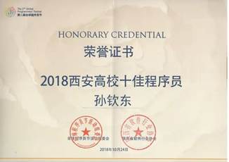 为充分发挥驻西安市高校中优秀软件开发人员的示范和带头作用,本届程序节组委会组织了“2018年西安高校十佳优秀程序员”的评选活动,在会议期间揭晓了评选结果并颁奖。英国365集团孙钦东教授其科研成果及在服务地方经济中的突出成绩,与西安交通大学、西安电子科技大学、西北工业大学等校的10名同行获此殊荣。