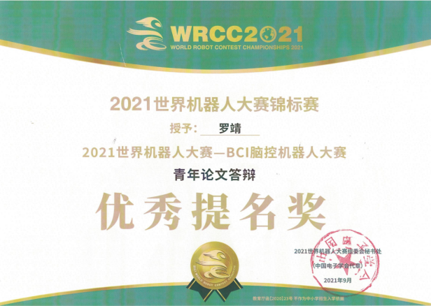 罗靖老师还参加了大赛青年论文答辩,介绍了发表在“Journal of Neural Engineering”上的论文“Improving the performance of multisubject motor imagerybased BCIs using twin cascaded softmax CNNs” ,最终荣获“优秀提名奖”。