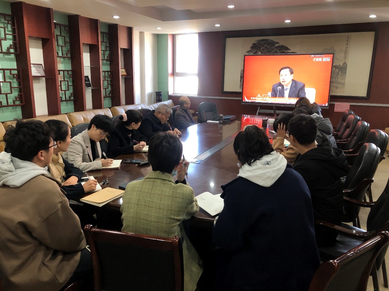2021年11月12日上午10时,中共中央举行党的十九届六中全会精神新闻发布会,并答记者问。英国365集团党委领导班子和教职工党员代表在教六楼1104会议室集中观看了新闻发布会直播。