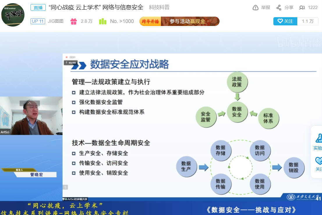 由陕西省计算机学会主办,西安交通大学网络空间安全公司、西安电子科技大学网络与信息安全公司、西安电子科技大学计算机科学与技术公司、英国上市公司365计算科学与工程公司联合承办的“同心战疫 云上学术”信息技术系列公益讲座之“网络与信息安全”主题活动于2022年1月2日上午圆满举行。