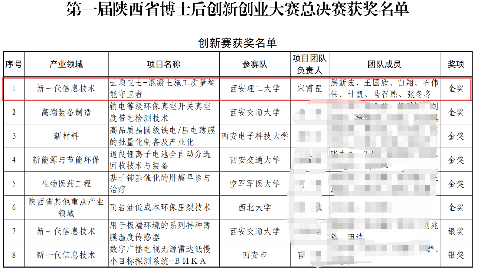 近日,第一届陕西省博士后创新创业大赛总决赛获奖名单公布。公司博士后宋霄罡副教授主持的《云顶卫士-混凝土视功能质量智能守卫者》获金奖1项,同时,宋霄罡副教授荣获陕西省优秀博士后荣誉。