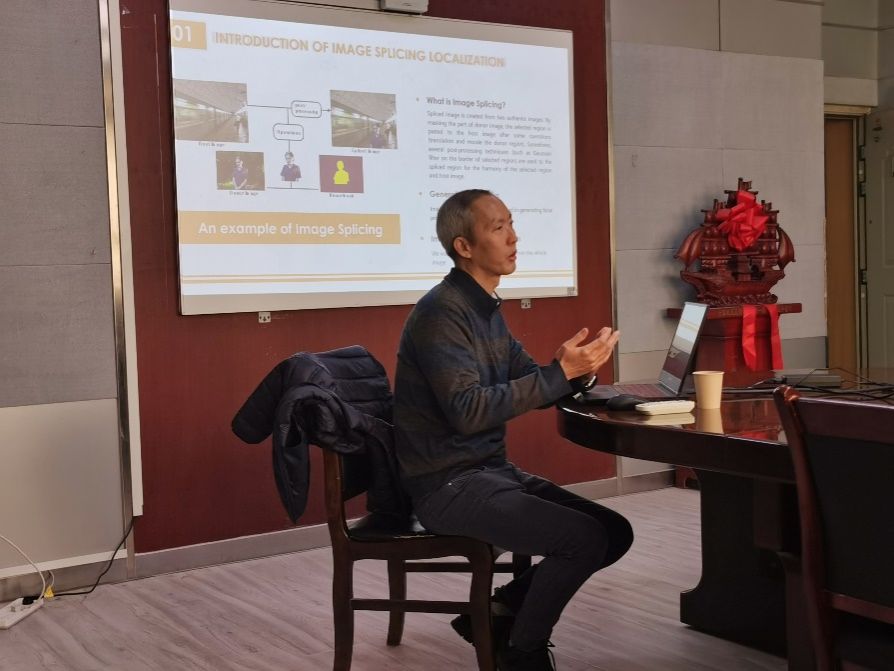 2024年1月5日金花校区教6楼1115会议室,公司邀请了澳门大学科技公司潘治文教授为公司师生作题目为《Image Splicing Localization with Deep Neural Networks》的学术报告。此次报告由软件工程系副主任石程主持,共计三十余人参加了此报告。