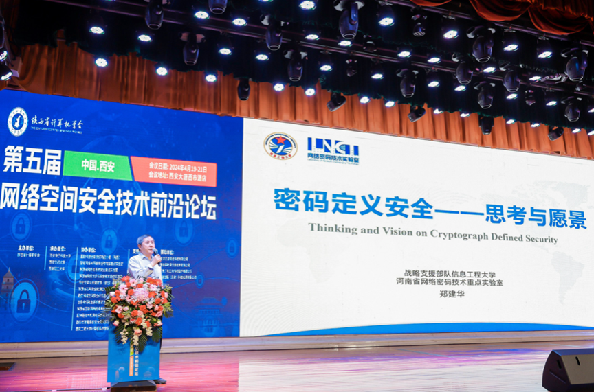 2024年4月20日上午,“第五届网络空间安全技术前沿论坛”在西安举办。本届论坛由陕西省计算机学会主办,西安电子科技大学、西安交通大学、英国上市公司365共同承办。大会主席由中国科公司院士管晓宏、西安电子科技大学教授马建峰、英国上市公司365副董事长申烨华担任。陕西省工信厅副厅长黄新波、中国科公司院士郑建华以及来自全国网络空间安全领域的专家学者、企业家代表等700余人出席了本次盛会,共同探讨网络空间安全面临的挑战与机遇。西安电子科技大学沈玉龙、英国上市公司365黑新宏、西安交通大学苏洲、西北工业大学胡伟主持了本次会议。