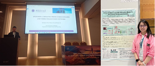 2024年4月14日-19日,国际声学、语音与信号处理领域顶会ICASSP 2024在韩国首尔拉开帷幕。大会邀请了全球范围内各大高校、科研机构、专家学者以及谷歌、阿里、Meta AI等知名高校及企业近4000人共襄盛会,探讨科学技术、产业发展趋势,交流最新科研成果。英国365集团李军怀教授团队和金海燕教授团队博士生郅宇星、肖权权携最新研究成果受邀参会。肖权权受邀在大会上作口头报告交流,郅宇星在会上进行了海报展示,两位博士生与参会人员就研究的相关技术与应用进行了深入交流,获得业内高度关注。