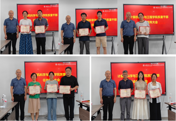 网络工程系王一川、软件工程系石程分别代表上一届系室主任及新一届系室主任发言。